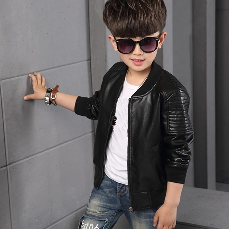 Boys Coats Autumn Winter Fashion Korean Children's Plus Velvet Warming Cotton PU Leather Jacket For 3-8Y Kids Jacket Outerwear